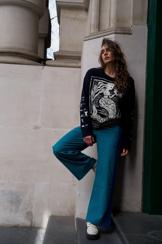Mermaid artwork Cotton Wool long sleeve knitted sweater - Black jacquard